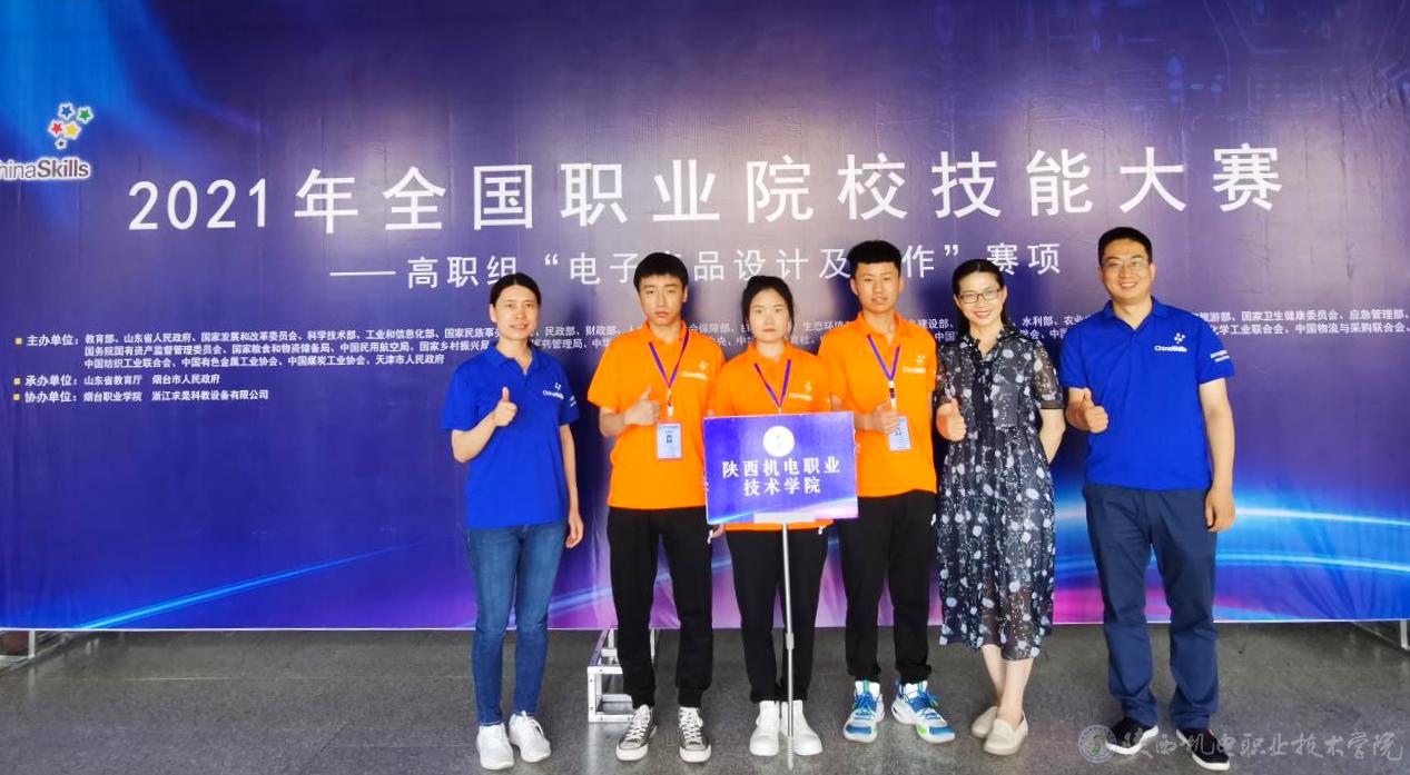 2021年6月20日,2021年“全国职业院校技能大赛(高职组)——电子产品设计及制作”赛项在烟台职业学院落下帷幕,来自全国各省市的27支代表队参与了该赛项。由我校电子与信息学院张琼、史磊两位老师指导的学生黄颖、马需、王泽组队代表陕西省参赛。三名选手在比赛表现出了扎实的专业技能水平,实现了赛题规定的各项功能。经过8个小时的角逐,最终获得该赛项国家二等奖的好成绩。