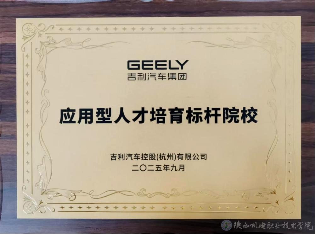 我校荣获吉利汽车集团“2025年度应用型人才培育标杆院校”称号