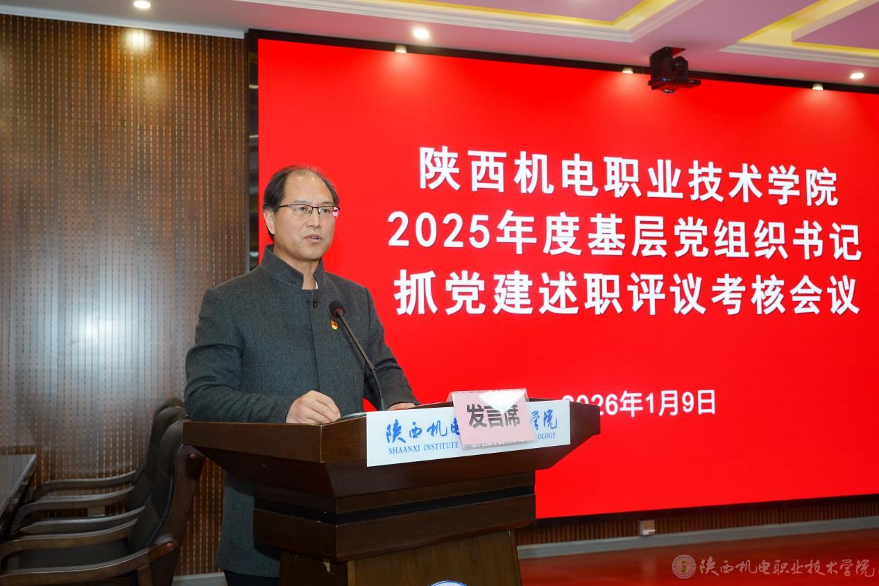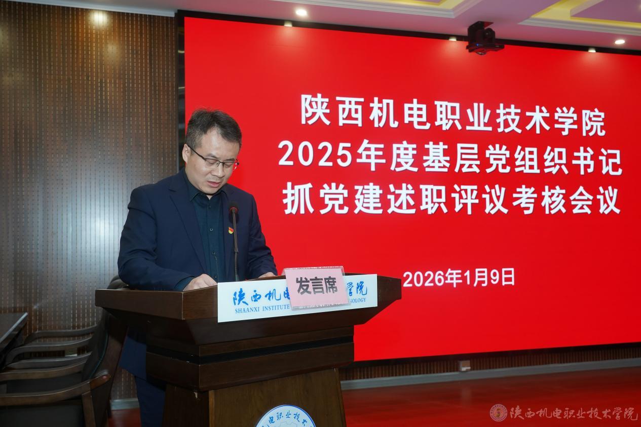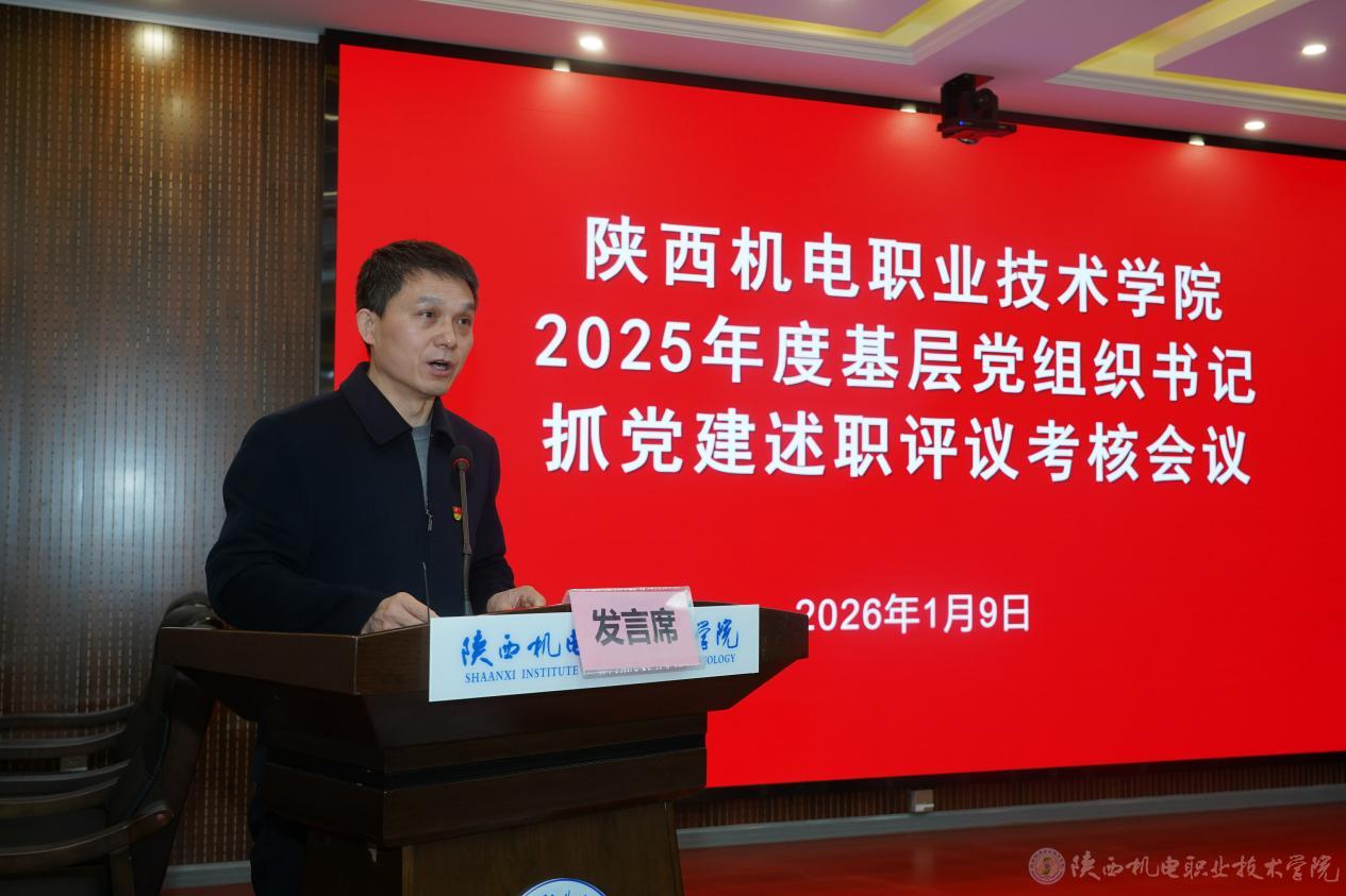2026年1月9日上午,学校2025年度基层党组织支部书记述职评议考核会议在蟠龙校区博学楼111室召开。党委委员、校领导、各基层党组织书记、各二级学院院长、各职能部门负责人、各基层党组织师生党员代表参加会议。会议由党委委员、校长助理、组织部部长赵争东主持。