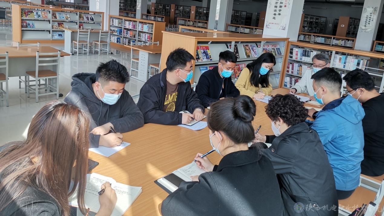 第一项,王建斌通报了组织生活会会前准备的有关情况。学生工作党支部于4月2日上午在蟠龙校区图书馆组织支部全体党员进行了一次专题学习研讨,认真学习了《中共陕西机电职业技术学院委员会关于认真开好2021年度党支部组织生活会和开展民主评议党员工作通知》,集体学习了党的十九届六中全会精神、《陕西省全面加强学校新冠肺炎疫情防控工作方案》(试行)等文件,支委与党员、党员与党员之间普遍开展了谈心谈话,相互交换意见,指出存在问题,为开好组织生活会和做好民主评议党员活动打牢了思想基础。