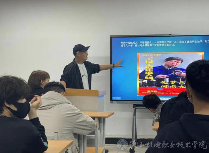 为做好我院2022年职业教育活动周相关工作,5月8日晚自习,我院各班级在教室集中学习宝鸡首位“大国工匠”刘湘宾先进事迹,班会由各辅导员组织开展,全院33个班级学生共同参与学习。